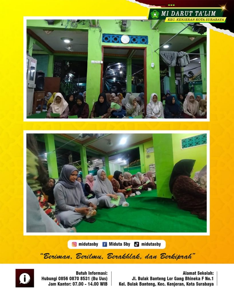 Sudah menjadi tradisi keagamaan yang tumbuh bersama perkembangan Pondok Pesantren Darut Ta’lim Surabaya. Rutinan yang dilaksanakan setiap Jum’at kedua ini lahir dari keinginan para ibu jamaah dan ustadzah untuk mempunyai wadah berkumpul, berdoa, dan saling menguatkan di tengah kesibukan keluarga dan aktivitas harian.