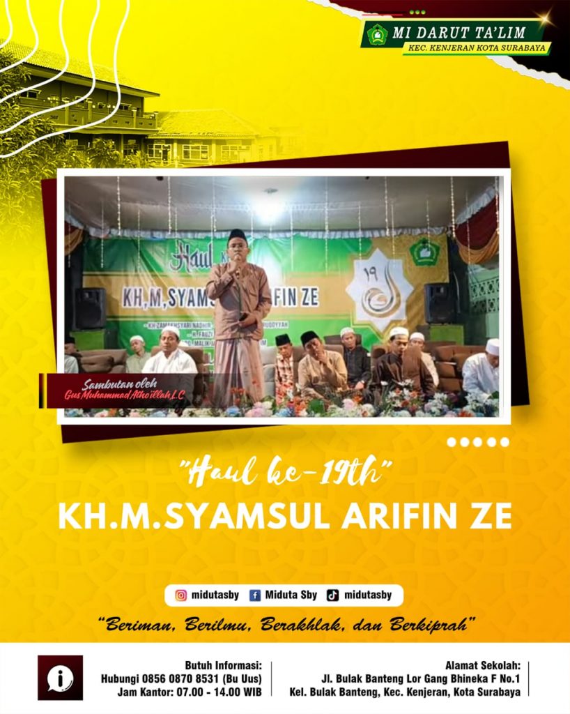 Pada Sabtu, 22 November 2025 pukul 18.30 WIB, Yayasan Darut Ta’lim melangsungkan Haul Muassis Darut Ta’lim KH. M. Syamsul Arifin ZE. Acara diselenggarakan di area Yayasan Darut Ta’lim dengan suasana yang khidmat, hangat, dan penuh kekeluargaan. Hadir dalam kegiatan tersebut para alumni, simpatisan, warga sekitar, serta tokoh-tokoh penting yang pernah bersinggungan langsung dengan kiprah perjuangan Almaghfurlah KH. M. Syamsul Arifin ZE.