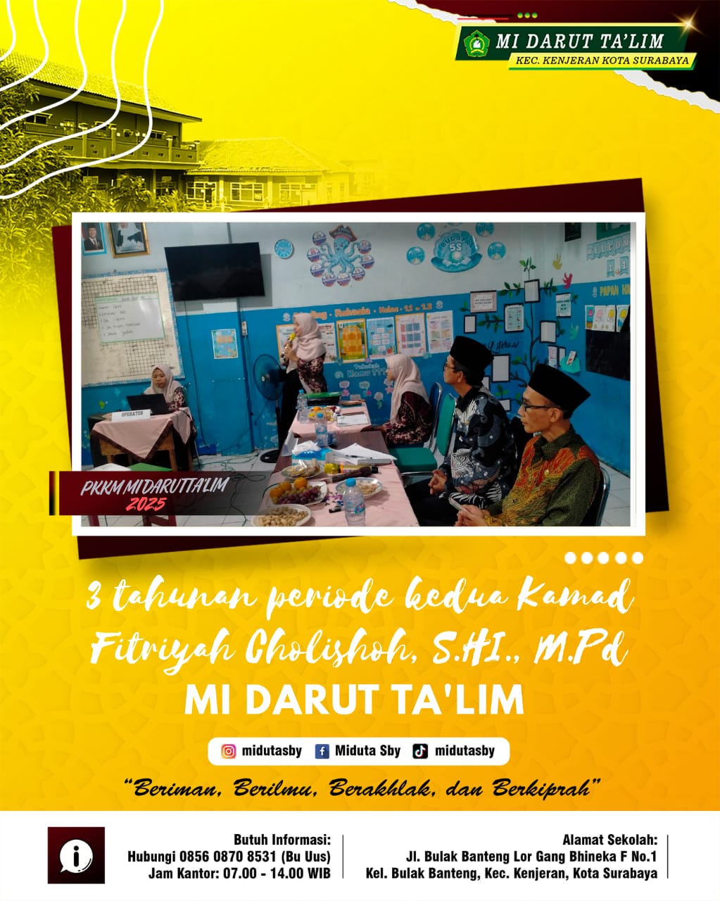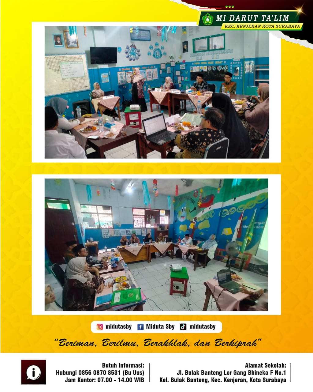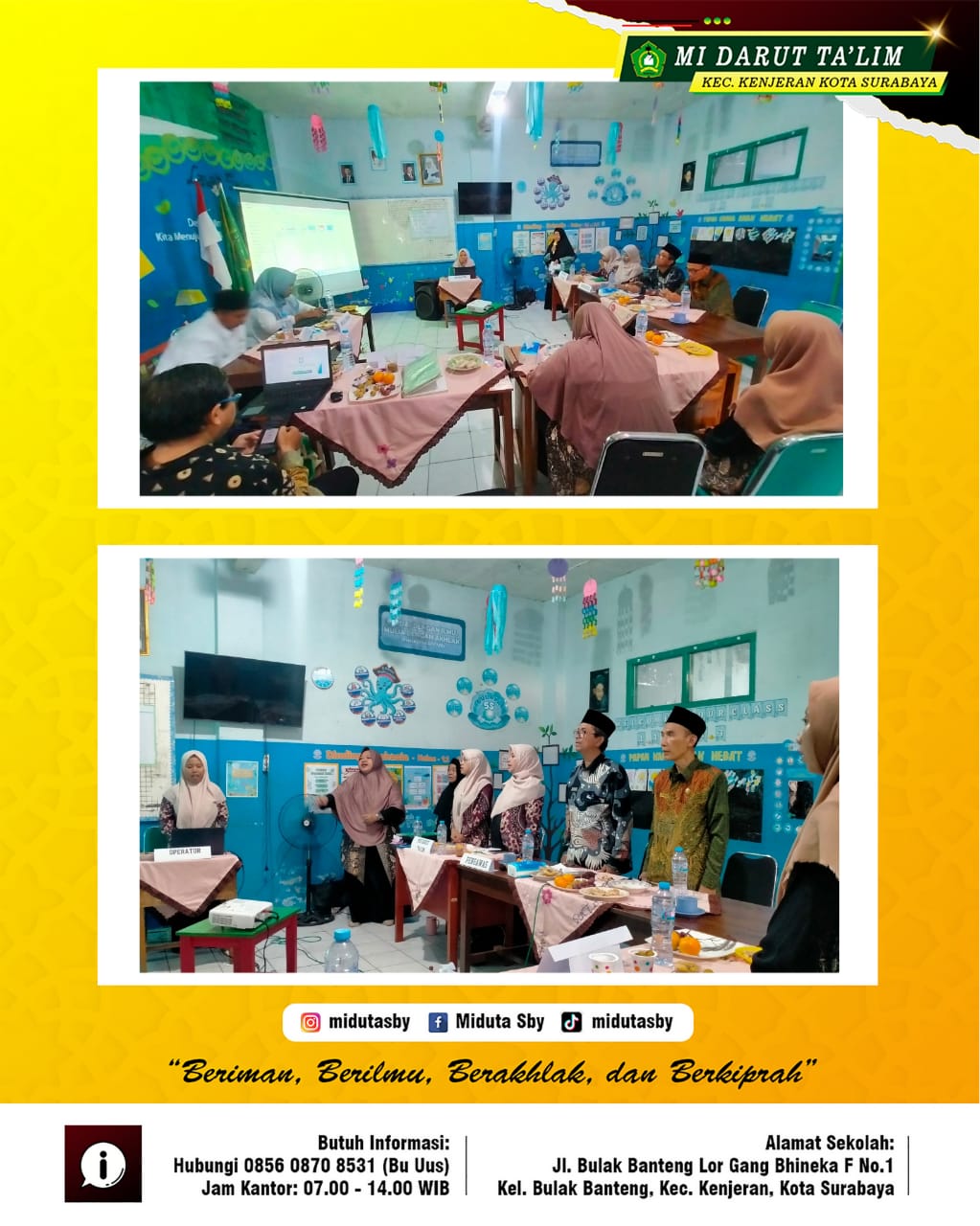 Pada hari Rabu, 5 November 2025, MI Darut Ta’lim melaksanakan kegiatan Penilaian Kinerja Kepala Madrasah (PKKM) sebagai bagian dari upaya evaluasi dan peningkatan mutu kepemimpinan serta manajemen madrasah. Kegiatan ini berlangsung di ruang pertemuan MI Darut Ta’lim mulai pukul 09.00 hingga 12.30 WIB, dengan suasana yang khidmat dan penuh semangat.
